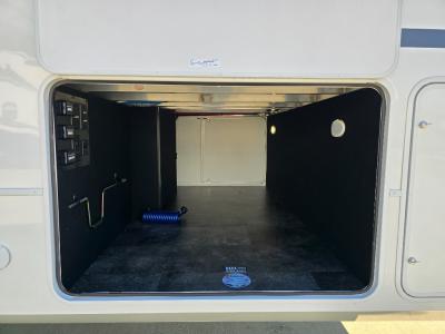 You will fall in love with this unit’s slide patio with picture window, the perfect spot to take in the breathtaking views. Enjoy outdoor cooking with the countertop prep area and pull-out grill, while the drop-down TV provides entertainment for all. Inside, rear living area features two sleeper sofas, perfect for lounging and relaxing. Overhead cabinets provide ample storage, while the 50” class smart TV offers endless entertainment options. Gather around the turn table dinette for meals or socializing. The kitchen is fully equipped with a microwave, sink, refrigerator, pantry, and hutch, making meal preparation and storage a breeze. Also this unit has a full bathroom and a cozy front bedroom which boast a king bed, ample closet, a TV, and so much more!