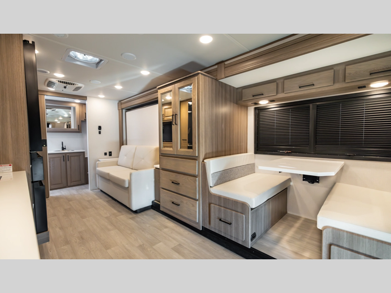 Sleeps 4 Slides 1 Length 31 ft 4 in Ext Width 8 ft Ext Height 12 ft 1 in Int Height 7 ft Exterior Color Full-Body Paint Options; Lunar Ridge, West Ridge, Treeline, Leigl Edition (Limited Edition Interior Included) Hitch Weight 14500 lbs GVWR 22000 lbs Fresh Water Capacity 70 gals Grey Water Capacity 45 gals Black Water Capacity 46 gals Furnace BTU 30000 btu Generator 8,000W Diesel Fuel Type Diesel Engine 6.7L Power Stoke V8 Turbo Diesel Chassis Ford F600 4x4 Horsepower 330 hp Fuel Capacity 66 gals Wheelbase 205 in Number Of Bunks 1 Available Beds Powered Murphy Bed Torque 950 ft-lb Refrigerator Type 12V Refrigerator Size 16 cu ft Convection Cooking Yes Shower Size 36" x 36" Number of Awnings 1 Axle Weight Front 7500 lbs Axle Weight Rear 15500 lbs LP Tank Capacity 85 lbs. Water Heater Type Tankless AC BTU 28500 btu TV Info LR 40" TV Awning Info 18' Legless Girard w/LED Strip Gross Combined Weight 31500 lbs Shower Type Standard Electrical Service 50 amp Solar Wattage 400 watts Similar Floorplans