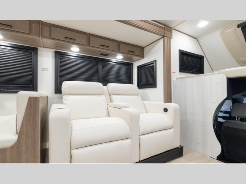 Sleeps 5 Slides 2 Length 34 ft 1 in Ext Width 8 ft 6 in Ext Height 12 ft 3 in Int Height 7 ft Exterior Color Full-Body Paint Options; Lunar Ridge, West Ridge, Treeline, Leigl Edition (Limited Edition Interior Included) Hitch Weight 14500 lbs GVWR 22000 lbs Fresh Water Capacity 78 gals Grey Water Capacity 45 gals Black Water Capacity 45 gals Furnace BTU 30000 btu Generator 8,000W Diesel Fuel Type Diesel Engine 6.7L Power Stoke V8 Turbo Diesel Chassis Ford F600 4x4 Horsepower 330 hp Fuel Capacity 66 gals Wheelbase 238 in Number Of Bunks 1 Available Beds Queen Torque 950 ft-lb Refrigerator Type 12V Refrigerator Size 16 cu ft Convection Cooking Yes Shower Size 36" x 36" Number of Awnings 1 Axle Weight Front 7500 lbs Axle Weight Rear 15500 lbs LP Tank Capacity 80 lbs. Water Heater Type Tankless AC BTU 28500 btu TV Info Cab 40" TV Awning Info 20' Legless Girard w/LED Strip Washer/Dryer Available Yes Gross Combined Weight 31500 lbs Shower Type Standard Electrical Service 50 amp Solar Wattage 400 watts Similar Floorplans