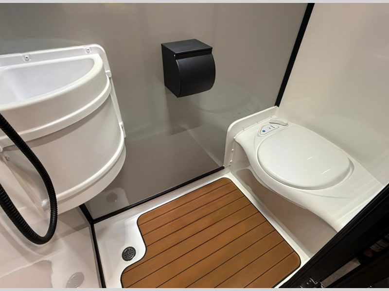 The one-piece Luxe vinyl flooring and aluminum cabinetry will be easy to clean, and there are sleek solid surface countertops. You will also find Tweed interior walls with Azdel, USB charging ports to keep your phone charged, plus an on-demand water heater for added comfort!