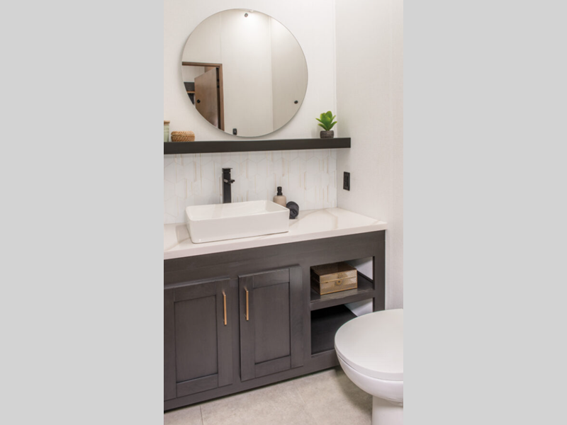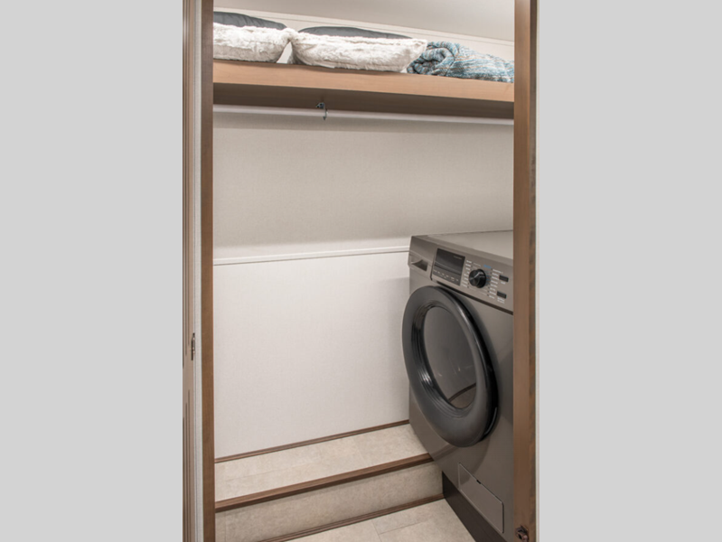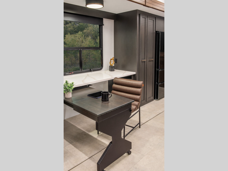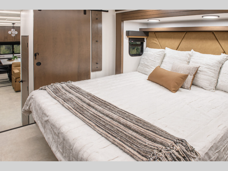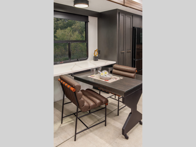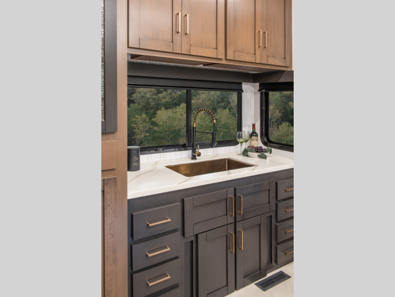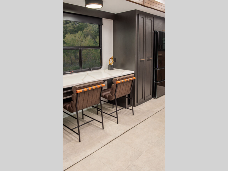 Each Bighorn is packed with luxury features. Head inside to find Bighorn Custom hardwood cabinetry, solid surface countertops throughout, tinted frameless windows, a luxurious one piece fiberglass shower, oversize copper sink with roller cover, and the list goes on. There is an instant on-demand water heater, a triple high efficiency A/C’s with trio airflow A/C system to evenly cool your unit, plus a LED fireplace w/ 5,000 BTU electric heat for cold days. You will find it effortless to set up camp with the 6-point hydraulic leveling system, and the docking and utility center will make camping that much easier.