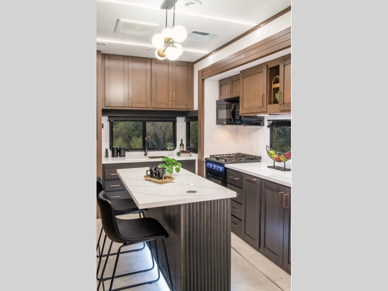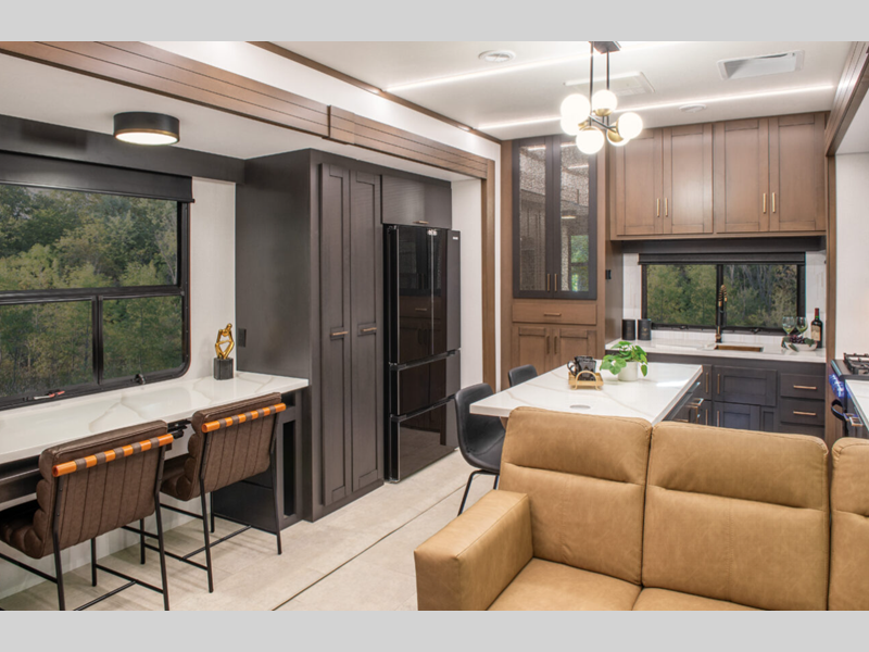 Sleeps 4 Slides 3 Length 38 ft 11 in Ext Width 8 ft 5 in Ext Height 13 ft 4 in Interior Color Brownstone Hitch Weight 2895 lbs GVWR 16895 lbs Dry Weight 13839 lbs Cargo Capacity 3008 lbs Fresh Water Capacity 100 gals Grey Water Capacity 45 gals Black Water Capacity 45 gals Furnace BTU 35000 btu Available Beds King Refrigerator Type 12V Refrigerator Size 16 cu ft Number of Awnings 1 Axle Weight 7000 lbs LP Tank Capacity 30 lbs Water Heater Type On Demand AC BTU 45000 btu TV Info LR 55" Smart TV, BR 40" LED TV Awning Info 16' Axle Count 2 Washer/Dryer Available Yes Number of LP Tanks 2 Shower Type Standard Electrical Service 50 amp Similar Floorplans