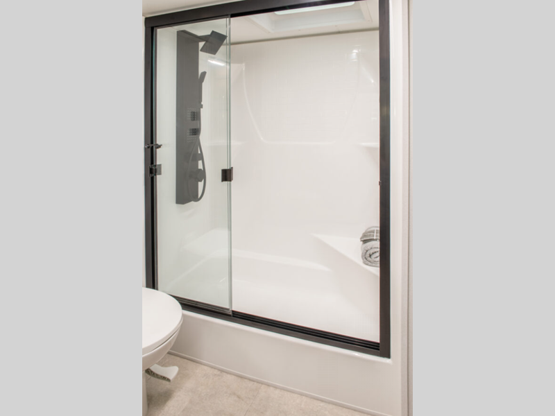 - One Piece Fiberglass Shower Surround w/ Sliding Glass Doors