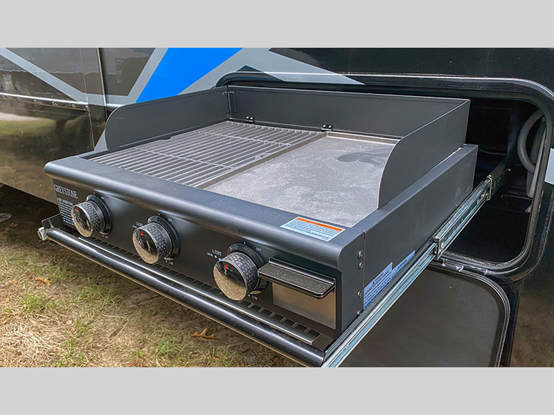 - Industry first Grill and Go 25” Residential Pull out 3 burner griddle grill combo