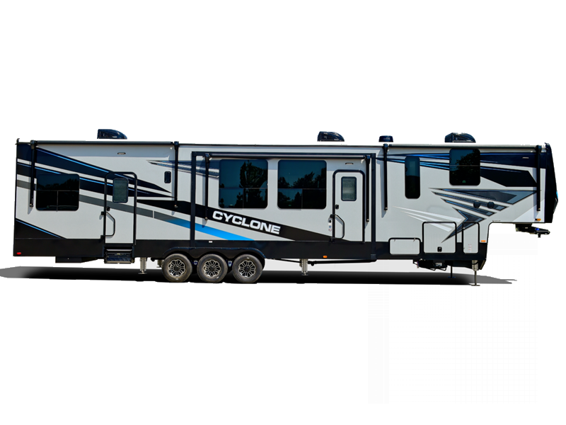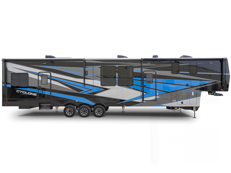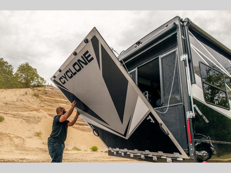 Choose a Cyclone toy hauler fifth wheel by Heartland and take the world by storm!
