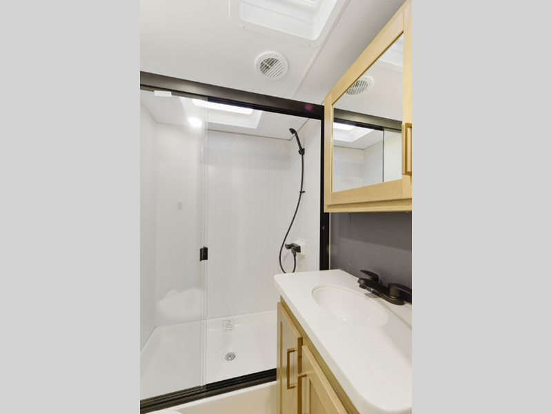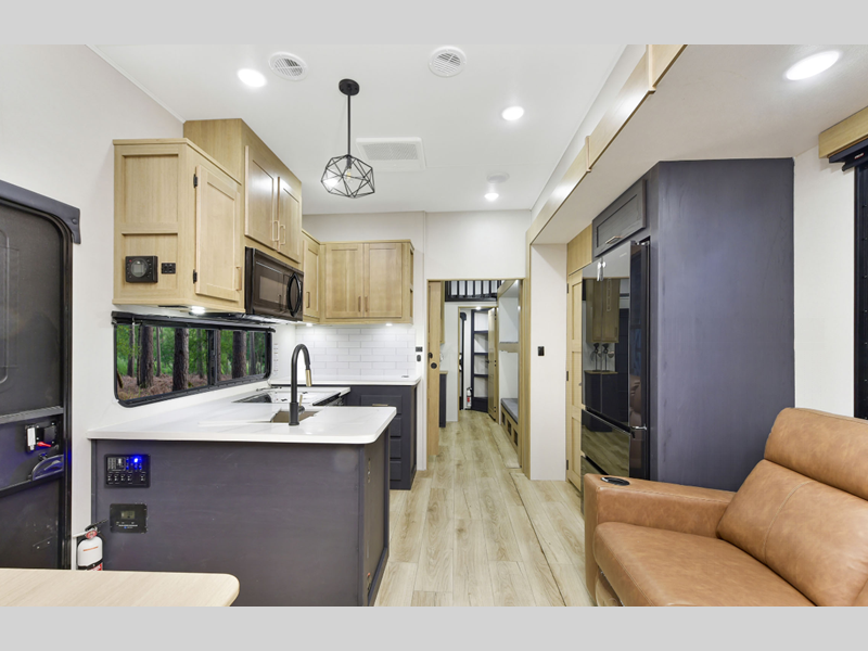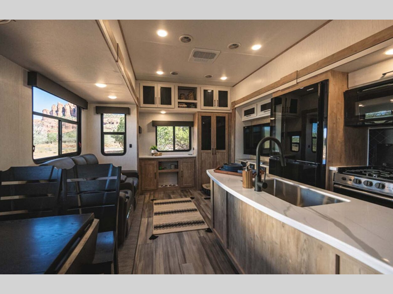 - Chef kitchen (30" over the range microwave/21" large RV oven)