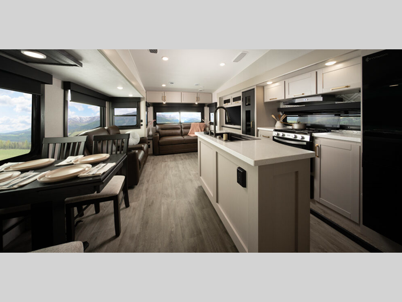 At the heart of every fifth wheel lies the 5 in. TrusstXL Roof System, a hallmark of structural excellence and strength. Each fifth wheel is fortified with ThermaShield, a zero-degree tested weather protection system with a fully enclosed and heated underbelly engineered for the most demanding climates, delivering comfort in frigid conditions. In the interior, you will find USB-C 12V charging ports strategically placed for effortless device charging and power management, plus a shower skylight that infuses the bathroom experience with natural light and openness.