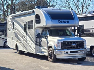 The Omni Super C diesel motorhome by Thor Motor Coach starts with a durable welded tubular steel floor, vacu-bond laminated roof, walls, and floors with block foam insulation, and a full-body paint package with gel-coat sidewalls. Each model includes either a F550 or F600 Power Stroke 4 x 4 Turbo Diesel engine that will allow you to maneuver tougher terrain when the adventure calls for it. The cockpit is every captain's dream with its power adjustable driver's seat, side view and back-up camera system, heated remote exterior mirrors, and more. You can control all of your coach's functions with the RapidCamp+ multiplex wiring control system, and the Winegard ConnecT Wi-Fi extender with 4G will allow you to stay in touch with the outside world as you travel. Each model includes residential linoleum throughout, Leatherette furniture, designer backsplash and solid surface countertops in the kitchen, and a glass shower door for that added touch of luxury. Come see all the other great features the Omni Super C diesel motorhome has to offer!