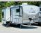 The whole gang can join in on the fun in this fifth wheel! The rear private 54" x 74" loft bed features a lower 60" x 70" bed beneath with storage and a TV, and its very own half bathroom with private entry/exit to the outside. There is also an exterior baggage door so you can easily pack gear straight into this room. The living area comes with dual recliner theater seating, a swing out 50" class HDTV, and a floating dinette table with two chairs and a movable ottoman with flip up storage. There is also a 16 cu. ft. 12 volt refrigerator and pull-out pantry here for food storage. And you can easily prepare your best home cooked meals using the three burner cooktop. When you're ready to wind down your night, head to the front private bedroom and relax on the queen bed slide which could be switched out for the optional king bed if you like! This unit also features an outdoor griddle and refrigerator under the loft space.