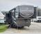 Luxury abounds throughout this fifth wheel starting in the centrally located kitchen featuring an L-shaped counter, a pull down storage pantry, a 24" range with an overhead convection microwave, and an 18 cu. ft. residential refrigerator with ice an maker. Just up the steps to the right of the entry, you will find a spacious bathroom featuring a 48" x 30" fiberglass shower with a seat, decorative glass enclosure, linen cabinet, and skylight above it for more natural lighting. Sleep like a baby in the front private bedroom on the king bed slide with storage underneath, and keep your clothes looking their best with the front closets. The rear entertainment living area offers true relaxation with L-shaped seating including a hide-a-bed sofa along the roadside, and powered theater seating facing the entertainment center with a 5,000 BTU decorative fireplace heater and Smart TV to watch your favorite movies! And don't overlook the best part, the powered side patio to entertain guests!