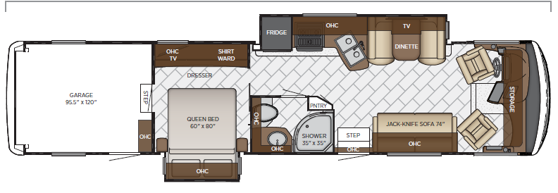 - 2 Recliners Off Door Side, Fold-N-Tumble Door Side (3722 Only)*